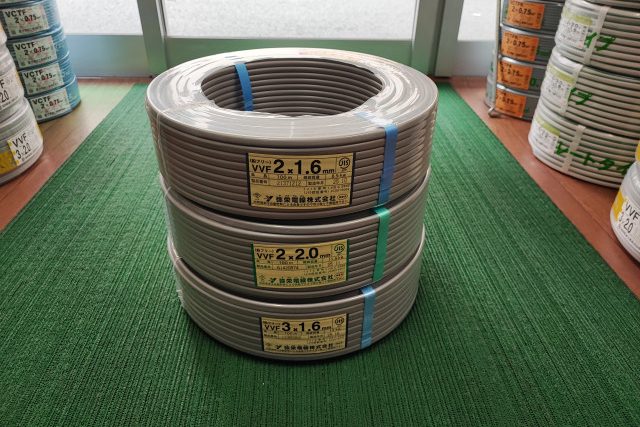 買取情報 種類 (8,400円)VVF 3×1.6mm 1巻、(13,090円)VVF 3×2.0m